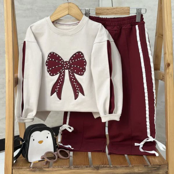 بلوز شلواردخترانه پاپیون مرواریدی کد 5021